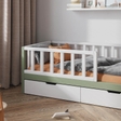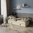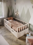 Ліжко виготовлене з масиву натурального дерева та має посилену конструкцію, розраховану на щоденне використання дітьми від 2 до 15 років.Модель підходить як для молодших дітей, так і для підлітків, завдяки доступним розмірам та універсальному дизайну.Захисний бортик забезпечує безпеку під час сну та монтується з будь-якого боку. Передній бортик має оптимальну висоту та закриває половину спального місця.Шухляди на меблевих прорезинених роликах додають місце для зберігання речей та підтримують порядок у кімнаті. Додатково можуть бути встановлені фальш-панелі для закриття боків.Комплектація:- Каркас ліжка з масиву вільхи